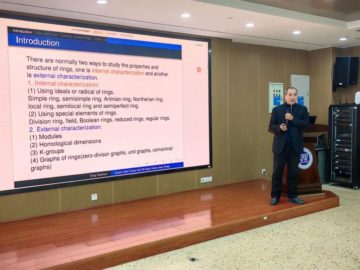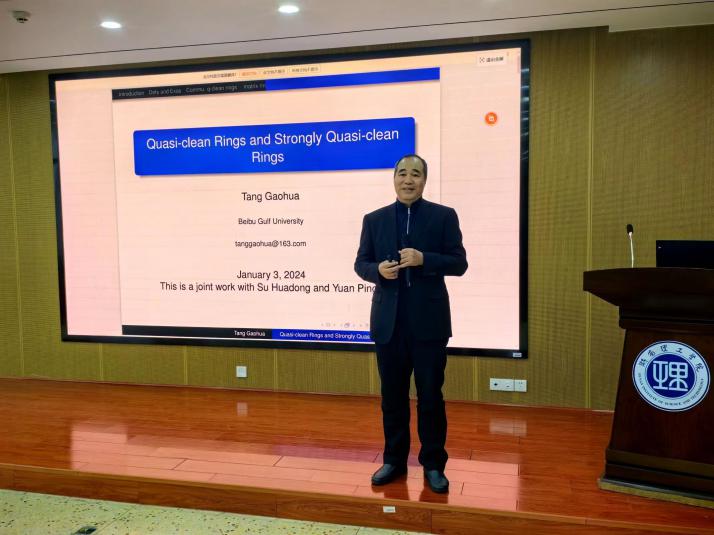 1月3日上午,北部湾大学唐高华教授应邀在17102报告厅为402永利集团师生做了题为“Quasi-clean Rings and Strongly Quasi-clean Rings”的“数学大讲堂”专家讲座,402永利集团副院长周小强(主持工作),副院长李松华、罗德仁,以及部分教师、全体研究生与会。