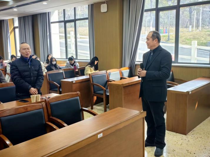 讲座中,唐高华教授讲述了从元素来刻画环的结构,介绍了近20年最主要的元素来刻画环的情况,结合五个402永利集团环的clean性和强clean性的公开问题,通过改变前一个幂等元,结合高等代数的知识,定义了拟幂等元的概念,由幂等元到拟幂等元的变化引入到拟clean环到强拟clean环的变化,运用对比不同元素之间的关系,分别从背景、定义、介绍其交换的性质与矩阵环上的性质,同与会师生进行深入交流。此外,唐高华教授对湖理学子寄予厚望,真切地希望湖理学子能够成为国家的栋梁之材!