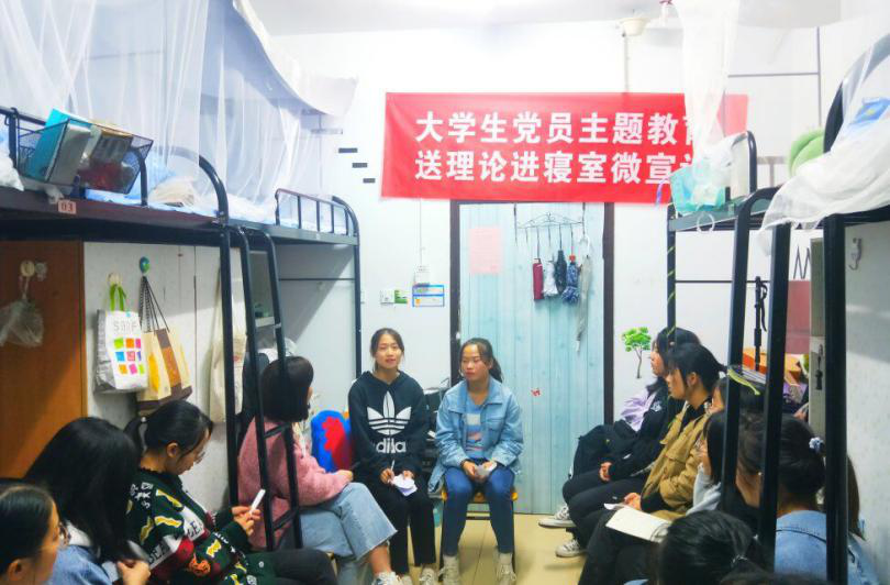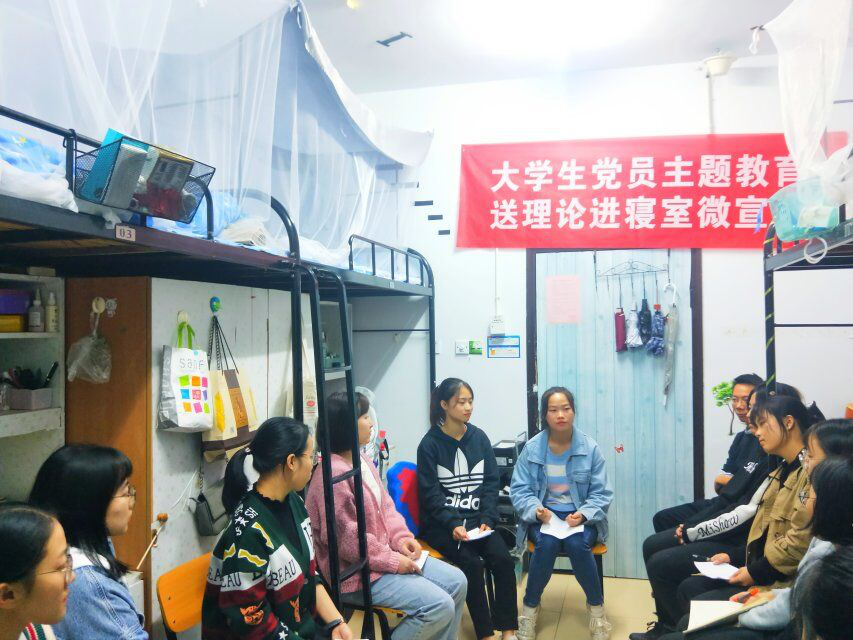 本站讯10月29日晚上7:30于16栋534寝室,体育学院603寝室深入402永利集团学生党支部开展“不忘初心、牢记使命”主题教育微宣讲活动。此次活动以“中国梦、强国梦”为主题。402永利集团党总支副书记易政群同志,学生支部书记何铁勇同志出席,15名学生党员参加。此次活动由体育学院何红英、王芳同志主讲。