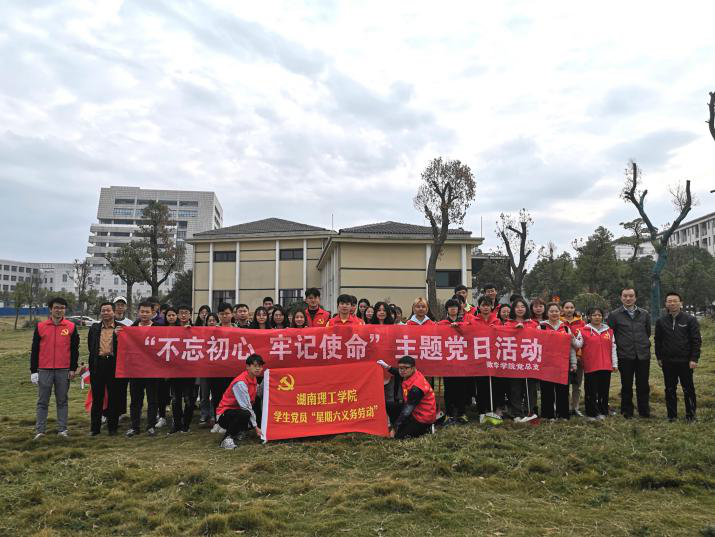 活动开始前,支部对参加人员进行分组,设立小组长。各组由组长带领,根据工作任务展开活动。活动中,学生党员和入党积极分子在教师党员的带领下,准时到达指定区域分组进行义务劳动。师生共同清理阳光草坪上的垃圾和杂草,同学们自备工具,认真清扫5栋教学楼各层栏杆走廊、楼梯门窗、周边绿化带。