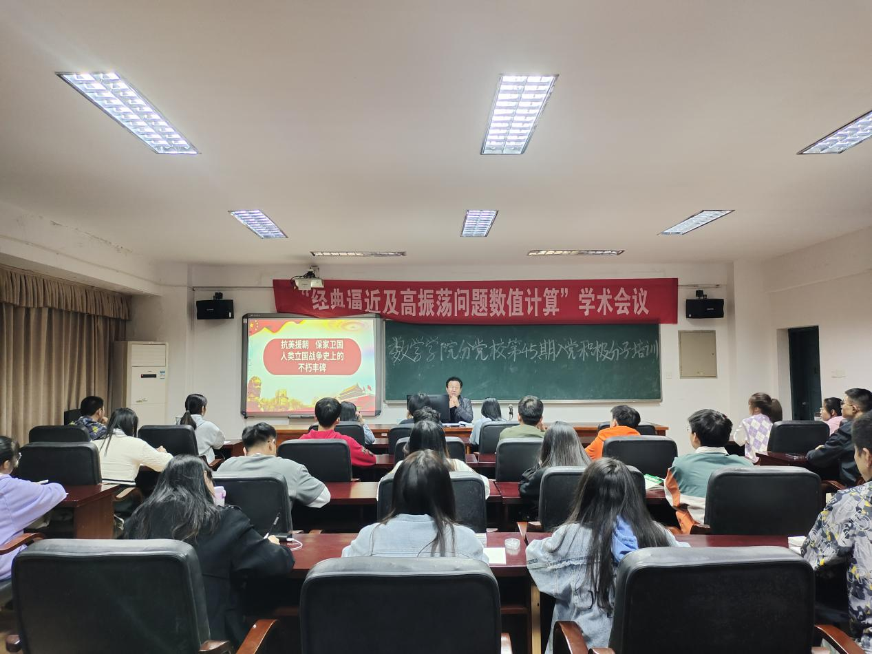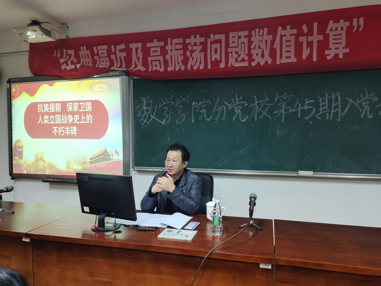 本站讯 2021年10月25日19:00于5511教室,402永利集团组织员易政群以“抗美援朝 保家卫国”为主题开展党课。第45期全体入党积极分子参与培训。