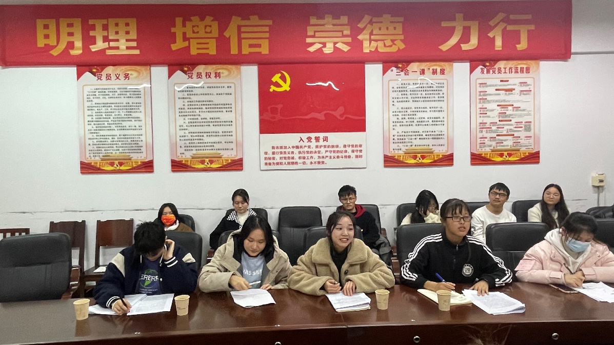 本站讯 12月9日晚19:00,402永利集团邀请体育学院604学理论示范寝室于5306会议室,进行党的十九届六中全会精神微宣讲,402永利集团学生党支部书记徐笑天主持,学生党员及入党积极分子代表共20人参加。