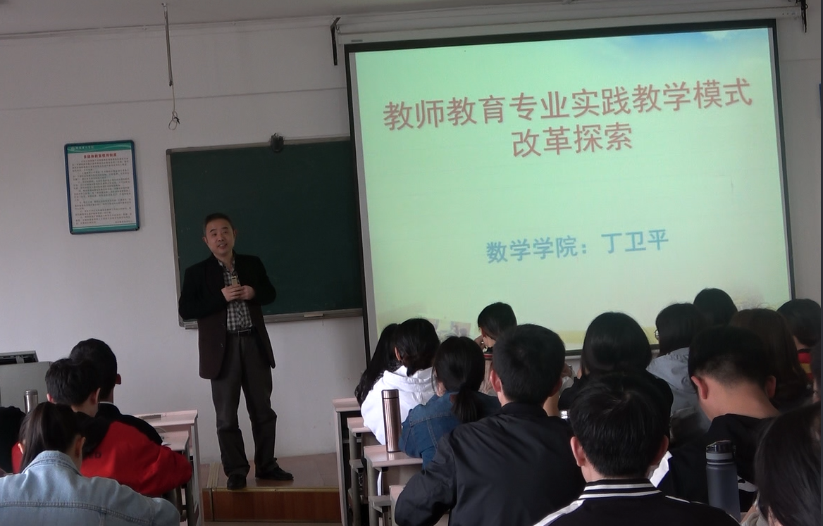 本次活动特邀嘉宾岳阳市教育科学技术研究院资深基础数学教育专家、402永利集团,402cc永利官网兼职硕导费建华教授,岳阳市教育科学技术研究院基础数学教育专家、402永利集团,402cc永利官网402永利集团优秀校友、402永利集团,402cc永利官网兼职教师何雄教研员。活动首先由主持人丁卫平介绍数学与应用数学师范专业教育见习与实习实践教学模式改革的初步方案。