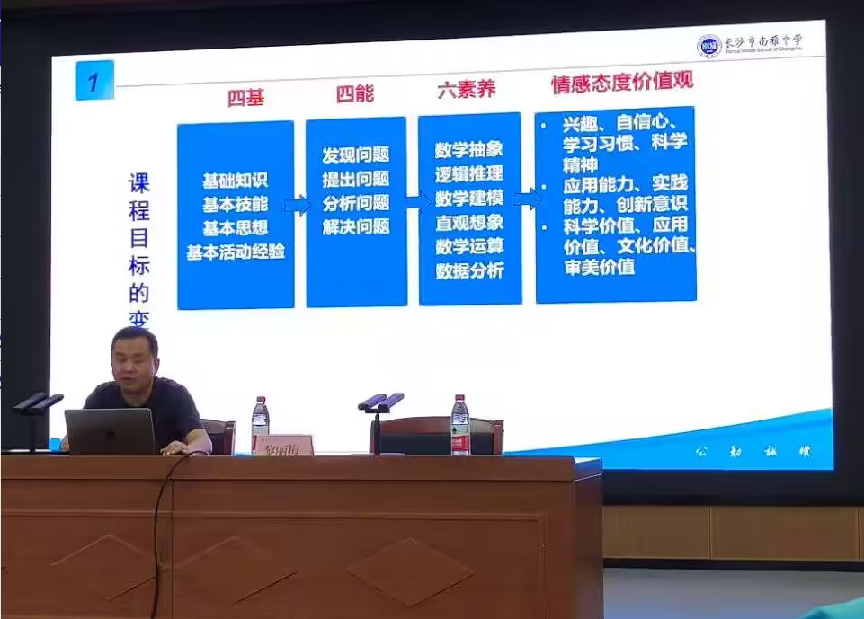 杨育球老师立足高中数学课程标准,深入阐释数学学科核心素养内涵,清晰梳理了从“四基”、“四能”到“六素养”及“情感态度价值观”的课程目标演进脉络。他结合丰富经验,系统剖析了教学设计、课堂实施与教学评价的关键要点与实操策略,为在座师范生未来从教提供了宝贵的专业指引。