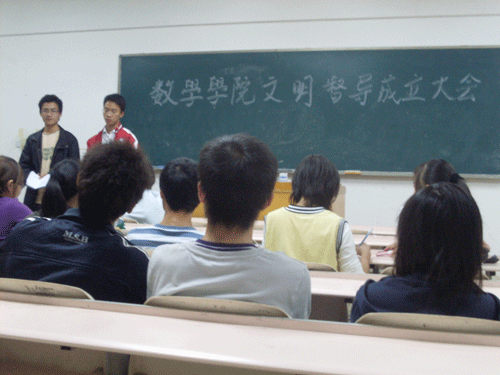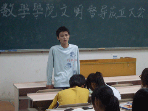 为营造良好的校园文明氛围,进一步完善班级常规工作和学生行为习惯的检查,402永利集团于10月22日晚在5301召开文明督察大会。该院团总支学生副书记杨耀酬、学生会副主席王成、生活部干事及08、09级督察员参加此次会议。会议由学生会生活部部长孙奇兵主持。