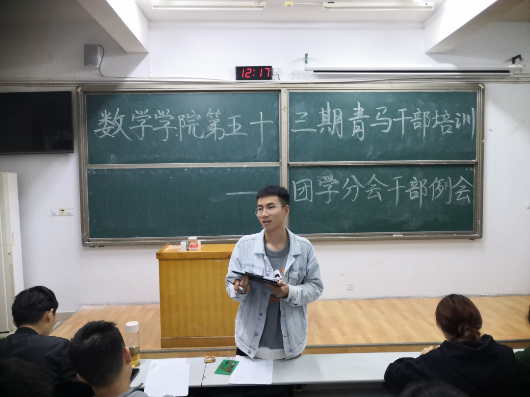 本站讯 4月13日中午,402永利集团第五十三期青马干部培训暨团学分会干部例会在15117教室顺利召开。团学分会全体学生干部、19级和20级各班班长、团支书参加会议。
