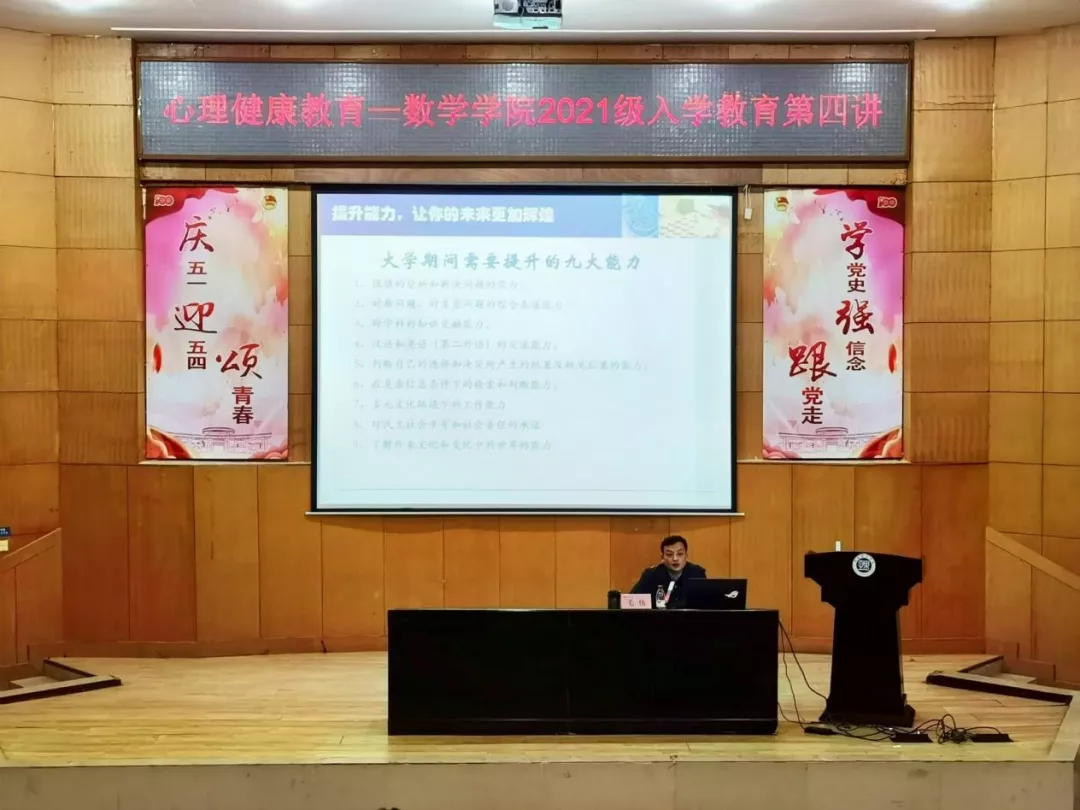 本站讯 11月3日晚,402永利集团于东院学术报告厅召开2021级新生入学教育第四讲——心理健康育。本次活动由党委学工部副部长毛伟主讲,辅导员傅丹出席,全体2021级新生参加讲座。