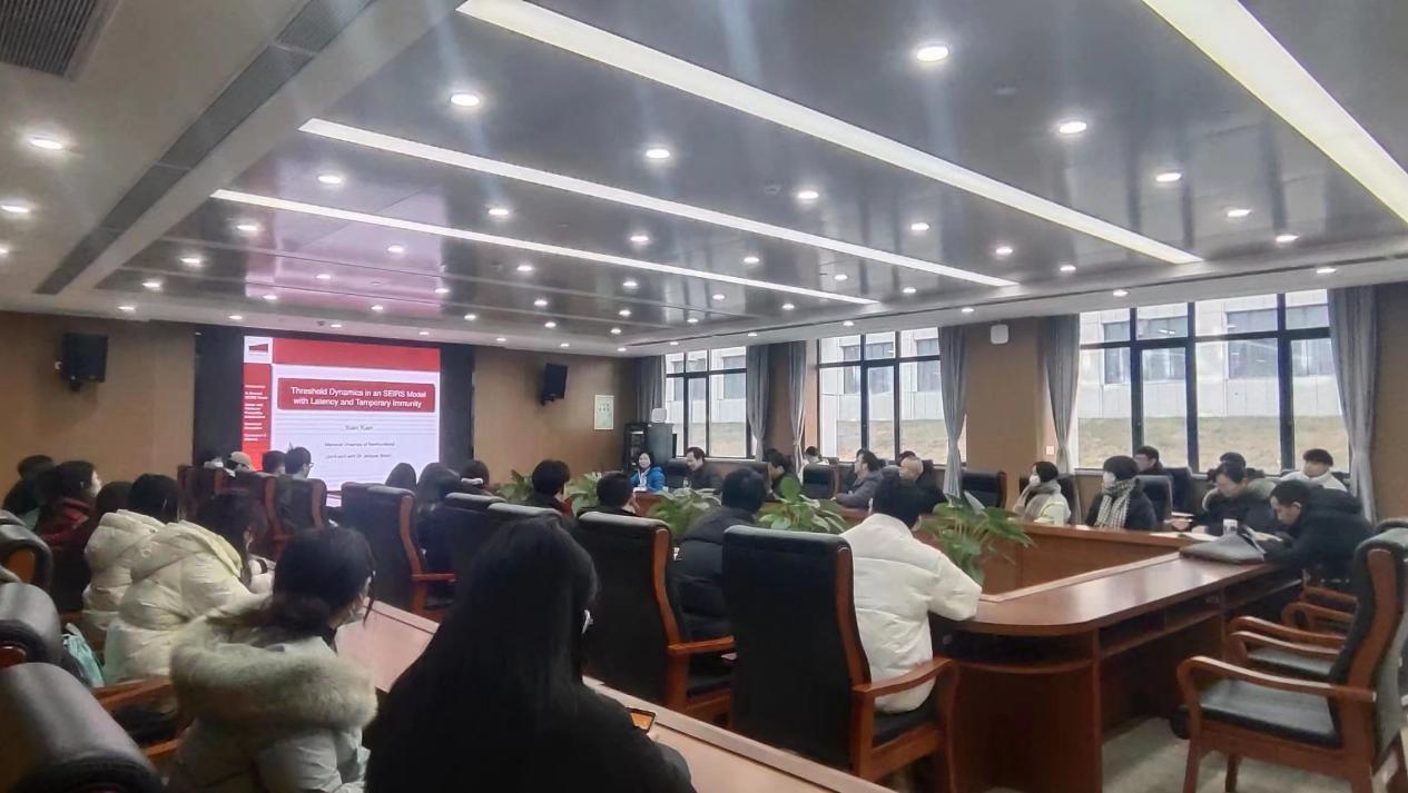讲座中,袁沅教授分享了其研究领域的心得与成果,并详细介绍了一种通用的SEIRS模式、特殊概率分布模型、数值模拟以及结论与罗马克等多种数学概念。她深入浅出地讲解了这些概念在实际应用中的重要性,为与会师生带来了一场丰富的学术盛宴。讲座最后,袁沅教授与同学们进行了交流讨论,师生踊跃发言,现场气氛热烈。