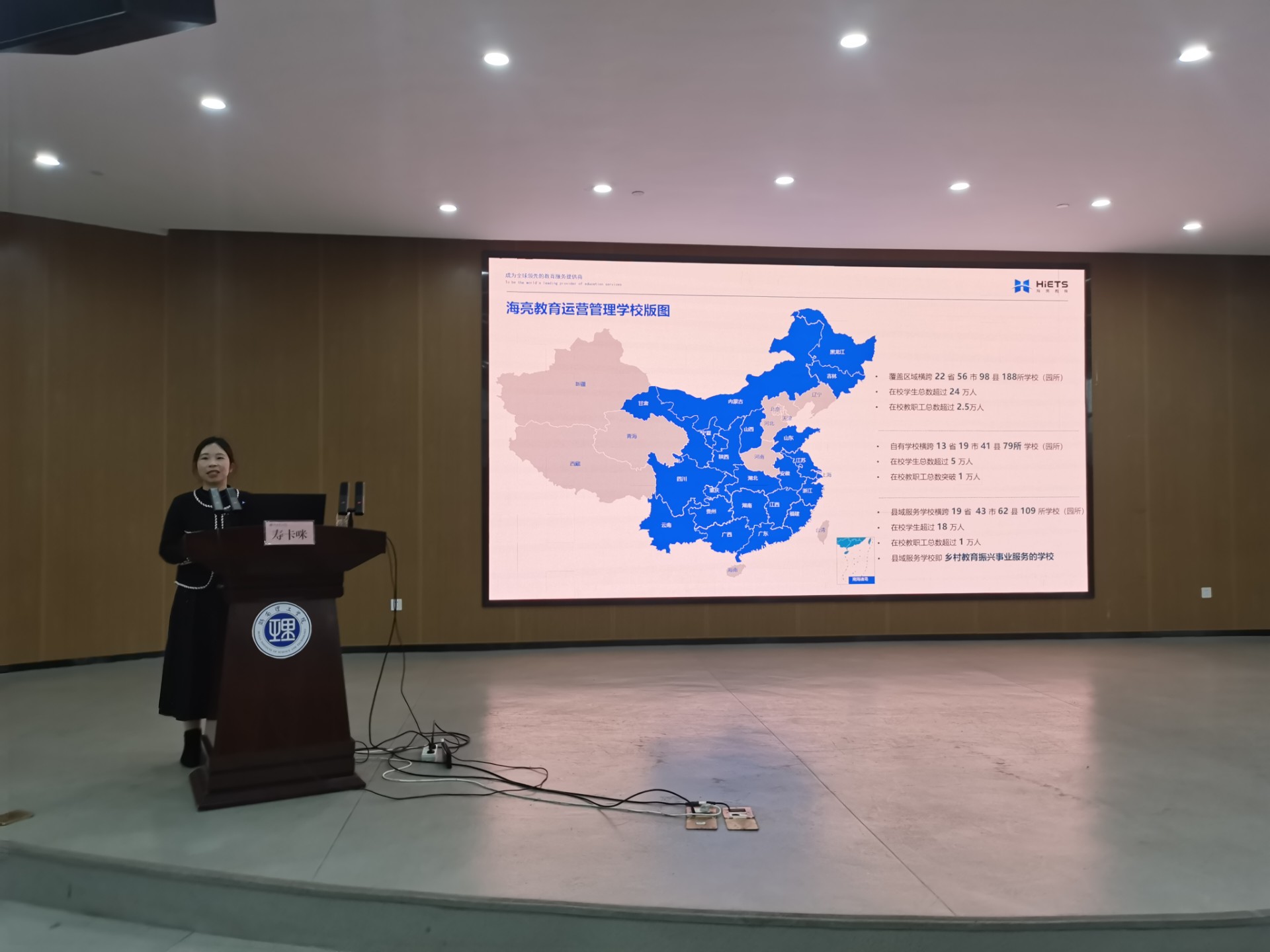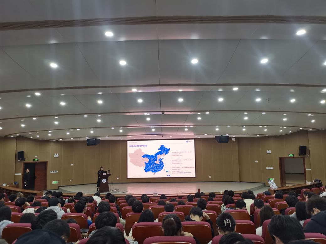 寿卡咪首先介绍了海亮教育科技服务集团的企业文化与集团产业。通过视频介绍,帮助同学们具体感受到海亮集团“以人为本、诚信共赢”的核心理念。寿卡咪提到,海亮教育科技服务集团把教育事业发展作为三大战略矩阵之一,402永利集团的专业性质恰好符合该集团的人才需求,而该集团丰富的资源也能给毕业生提供好的发展平台。因此,寿卡咪诚挚欢迎我院学生了解并加入海亮这一大家庭。