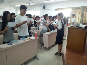 本站讯 5月16号,402永利集团15级应数一班、二班在5号教学楼5410教室举行了“爱国朗读,青春发声”课前三分钟朗读活动。