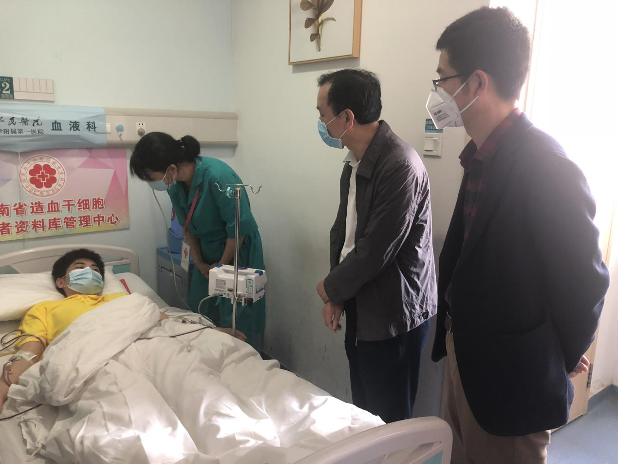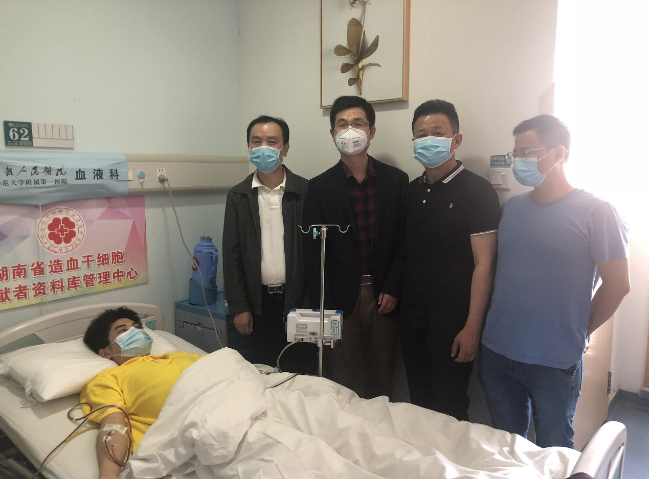 本站讯 4月29日,402永利集团18级信息与计算科学二班的周晨曦同学在湖南省人民医院进行了造血干细胞捐献。近十几年来,402永利集团,402cc永利官网402永利集团一直坚守与岳阳市血站的合作,给无数人传递了生的希望。周晨曦同学是402永利集团第一位进行造血干细胞捐献的学生。学校学工部副部长王云朋和402永利集团书记孙明保、副书记易政群、辅导员李哲君前往看望,并送上校长奖学金和学院慰问金。
