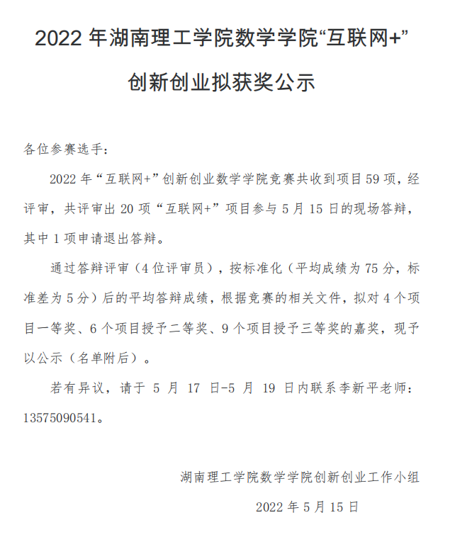 2022年402永利集团,402cc永利官网402永利集团“互联网+”创新创业获奖公示