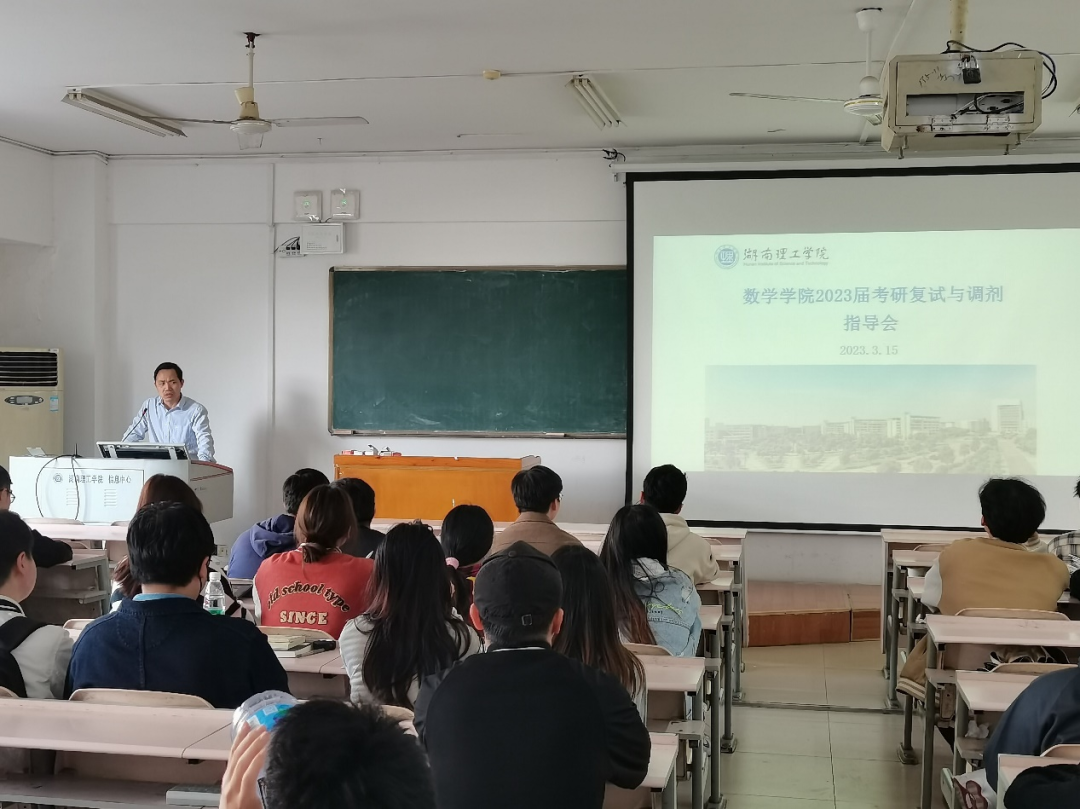 本站讯 3月15号下午4点,402永利集团在5409教室顺利召开2023年考研复试与调剂指导会。402永利集团院长周小强、党委副书记齐亮菲、研究生辅导员佘宁远出席,2023年考研复试考生参加本次会议。