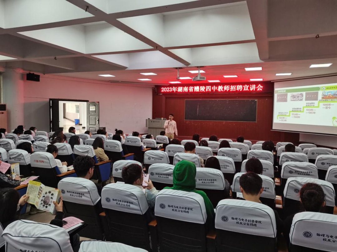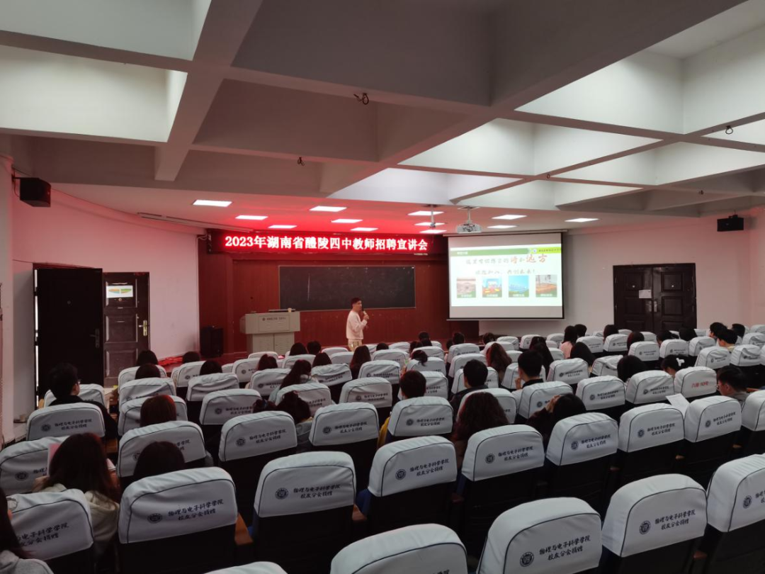 宣讲会上,醴陵县四中的负责人通过播放宣传片、PPT展示、面对面交流等方式向同学们介绍了学校的概况、发展方向以及人才需求,让我校学子对醴陵县四中有了全面深入的了解。随后,负责人和现场有就业意向的同学们进行了交流答疑,并希望大家能够抓住这个良好的就业平台。