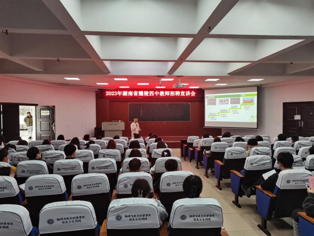 本站讯 3月7日上午,402永利集团,402cc永利官网402永利集团2023年教师招聘宣讲会——醴陵县四中专场于6栋学术报告厅顺利召开,醴陵县四中校园招聘负责人出席,我校多名毕业生参加会议。