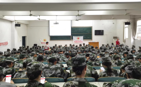 本站讯 4月18日下午,402永利集团联合岳阳市红十字会应急救护志愿者协会,于9T2教室开展战场医疗救护训练讲座。讲座由岳阳市红十字会志愿者主讲,402永利集团2022级全体学生参加。