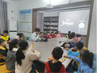 在“世界读书日”主题活动中,志愿者带领小朋友们互相介绍自己喜爱的书籍,所有活动参与者都沉浸在了图书的世界里。图书分享环节结束后,志愿者从地球日的由来、地球现状、从我做起保护地球三个方面,让小朋友们了解到保护地球的重要性,呼吁小朋友们从节约资源、减少一次性碗筷的使用和垃圾分类等身边小事做起,共同守护我们的蓝色家园。