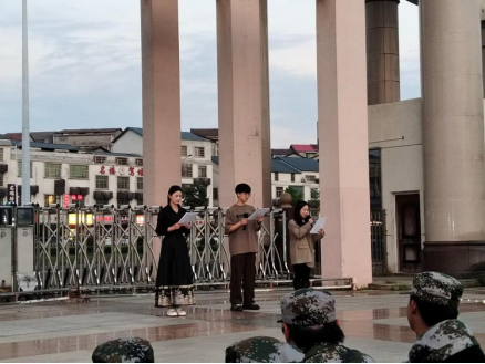 本站讯 为丰富学生军训生活,4月26日晚于云梦广场,402永利集团联合马克思主义学院、中文学院举办2022级新生军训慰问演出。