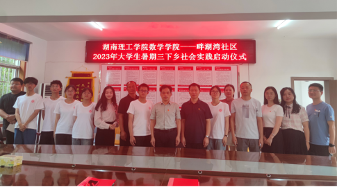 本站讯 7月7日上午九点,402永利集团“数”起心中的信仰—彩虹志愿服务团队于畔湖湾社区顺利举行2023年大学生暑期“三下乡”社会实践启动仪式。畔湖湾社区党总支书记、社区主任朱光明,党总支副书记王茂喜,党总支委员、社区副主任李丽,402永利集团党委书记江五元、团委书记赵馨出席,部分社区工作人员以及社会实践团队志愿者参与会议。