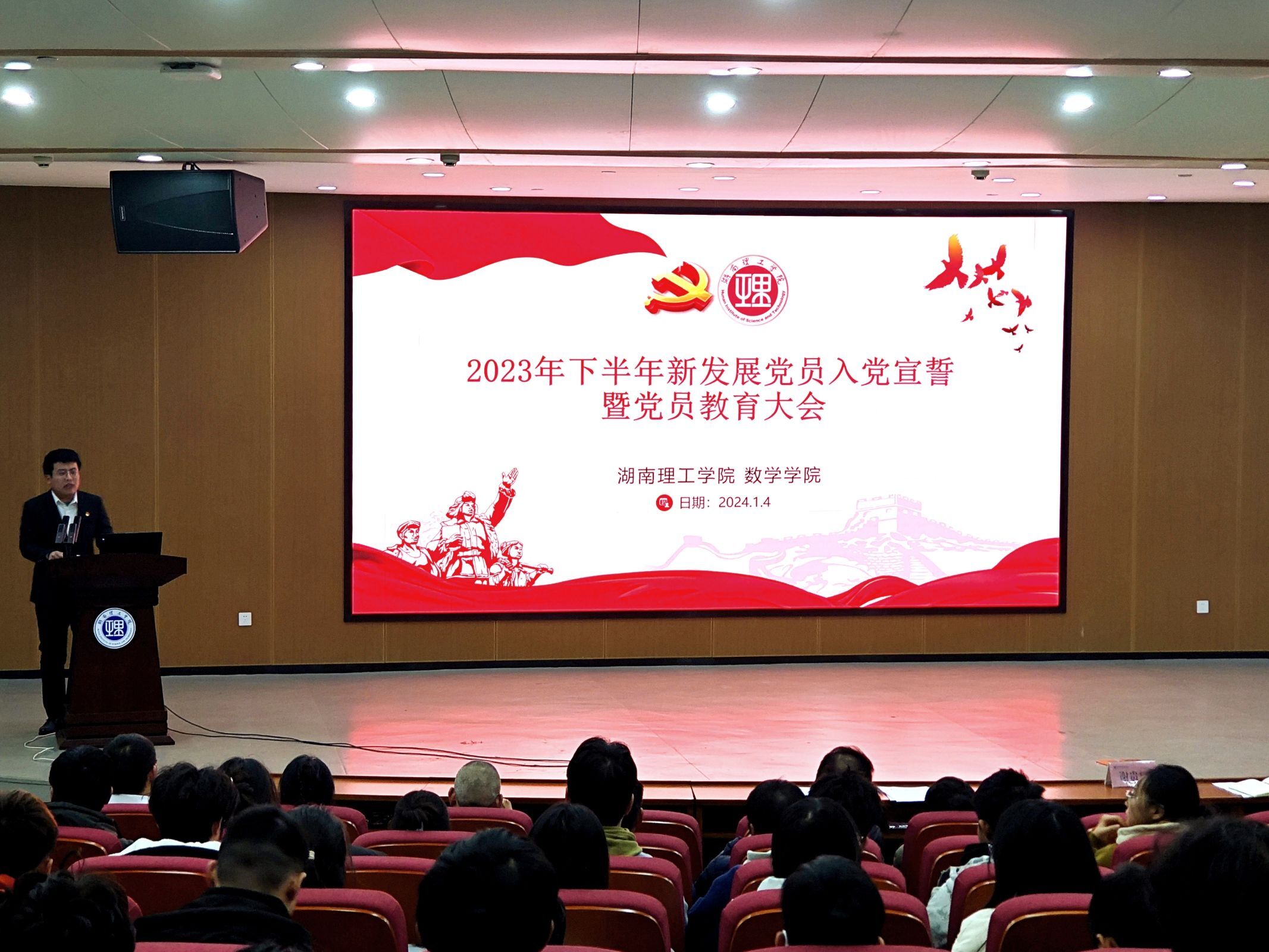 1月4日,402永利集团在17118报告厅召开新党员宣誓仪式暨党员教育大会。校党委委员、纪委书记谢贵辉,402永利集团党委副书记江五元(主持工作)、副院长李松华、副院长黎丽梅、组织员易政群出席,部分教工党员及全体学生党员、预备党员、入党积极分子与会。