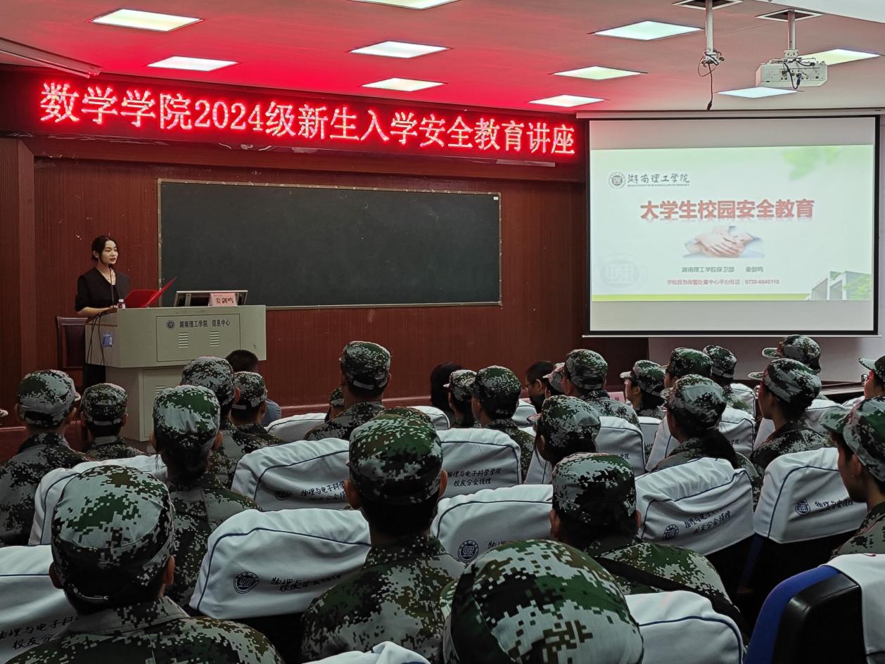 为深入践行学校安全管理理念,进一步强化新生的安全意识,10月8日晚,402永利集团于6栋学术报告厅顺利举办入学安全教育讲座。讲座由402永利集团,402cc永利官网党委保卫部部长姜剑鸣主讲,402永利集团党委副书记齐亮菲、辅导员佘宁远、赵馨出席讲座,2024级全体学生与会。