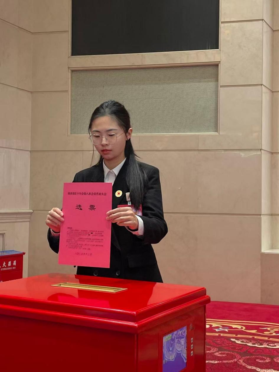 近日,湖南省红十字会第八次会员代表大会在长沙隆重召开。我院优秀学子仇紫坤凭借在公益服务领域的突出表现,作为青年学生代表应邀参会,充分展现了我院学子的责任担当与青春风采。