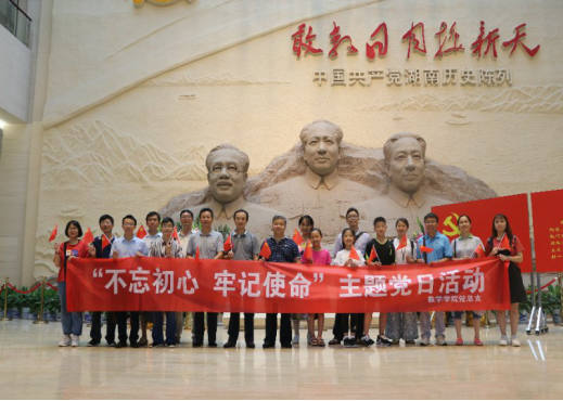 为深入学习党的十九大精神,值中国共产党成立97周年之际,402永利集团党总支于2018年7月1日组织全体教师党员参观党史陈列馆、雷锋纪念馆和杨开慧故居,开展“不忘初心,牢记使命”主题党日活动。