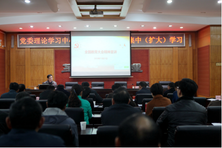 【校园网讯】11月21日,学校党委理论学习中心组举行2018年度第七次集中(扩大)学习,专题学习全国教育大会精神。党委书记李明作大会精神宣讲,要求全校上下要进一步把思想和行动统一到全国教育大会精神上来,统一到中央各项决策部署上来。党委副书记邱绍雄主持。学校党政领导班子成员,二级单位党政负责人参加学习。