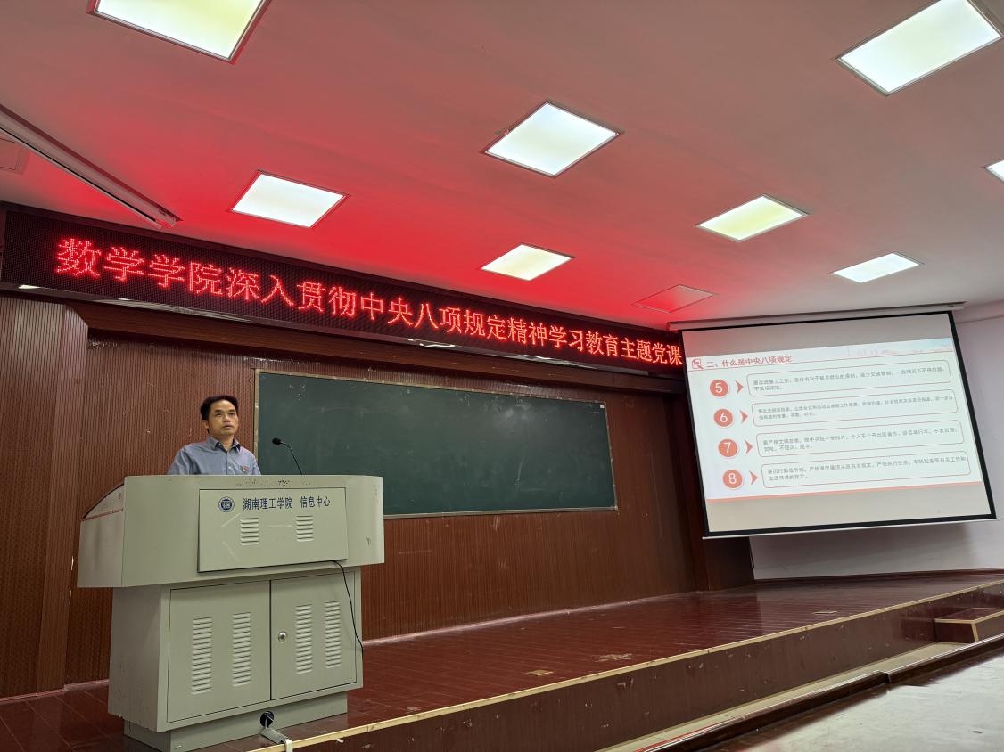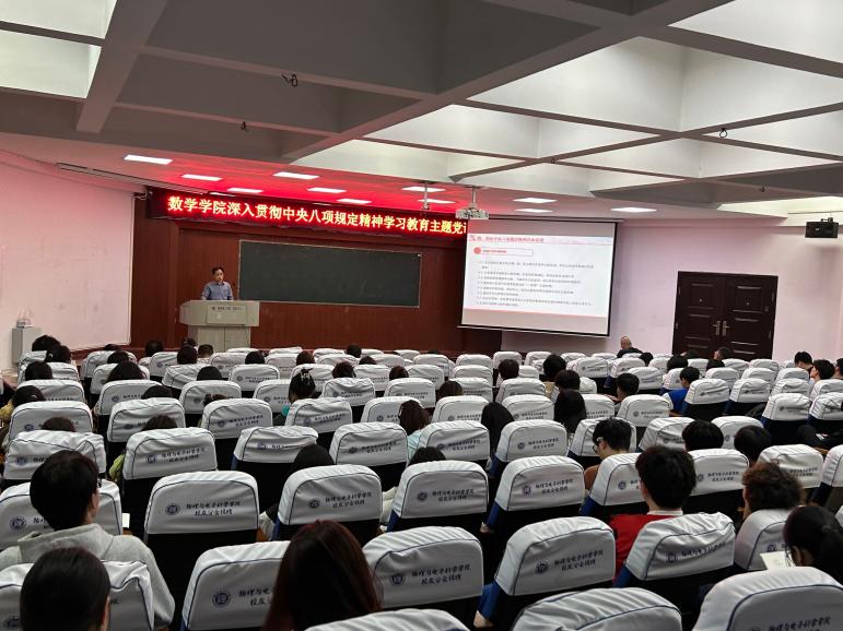 为深入贯彻中央八项规定精神,推动学院党建工作高质量发展,提升党员及入党积极分子的思想认识和党性修养,3月25日晚,402永利集团在六栋学术报告厅召开专题党课。此次党课由402永利集团党委书记江五元主讲,专职组织员赵馨主持,全体教师党员、学生党员和入党积极分子参加。